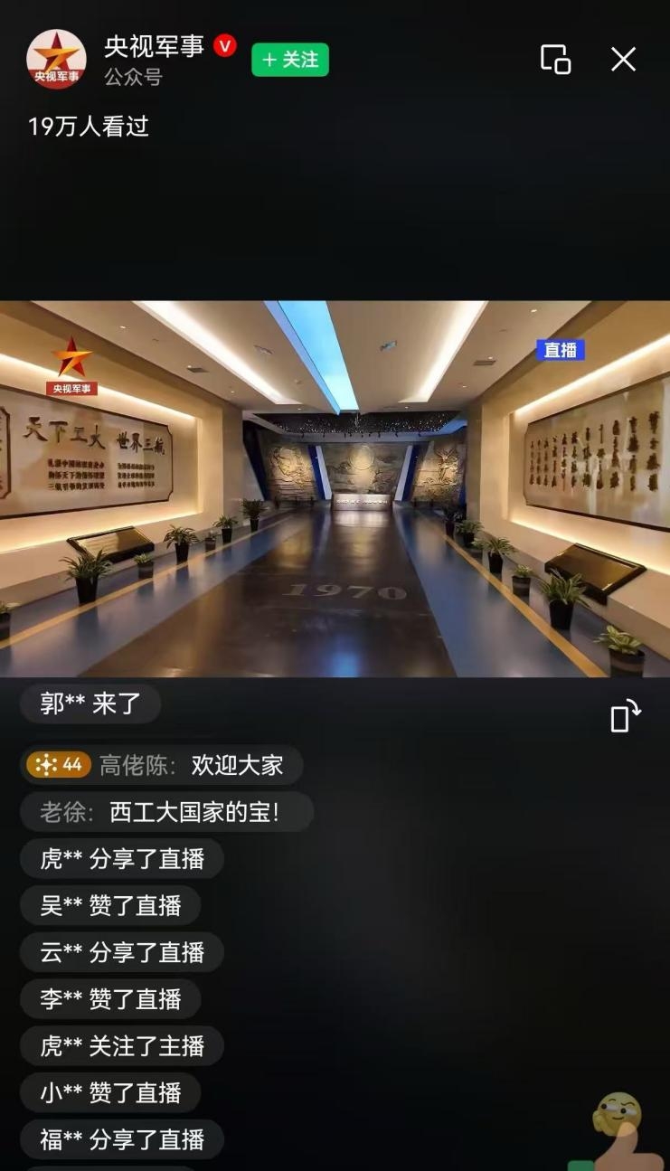 活动当天,央视、人民日报、新华社近20家媒体代表现场报道。其中,央视总台和陕西总站派出6位资深记者和主播庞大团队,央视军事频道启用了全方位报道,开展了对学校军工素质教育实践中心、航空学院仿生扑翼无人机、校史馆直播活动,在线观看人数超50万人。微信、微博、视频号、抖音、快手等全网新媒体和短视频平台播放量破亿。本次中央媒体以“运-20“头戴大红花”亮相,总师也来了!”“谁家学校“教具”,是运-20啊?!”多角度、全平台的系列报道引起了社会各界广泛关注,充分展示了学校“为党育英才、为国铸重剑”的良好形象。
