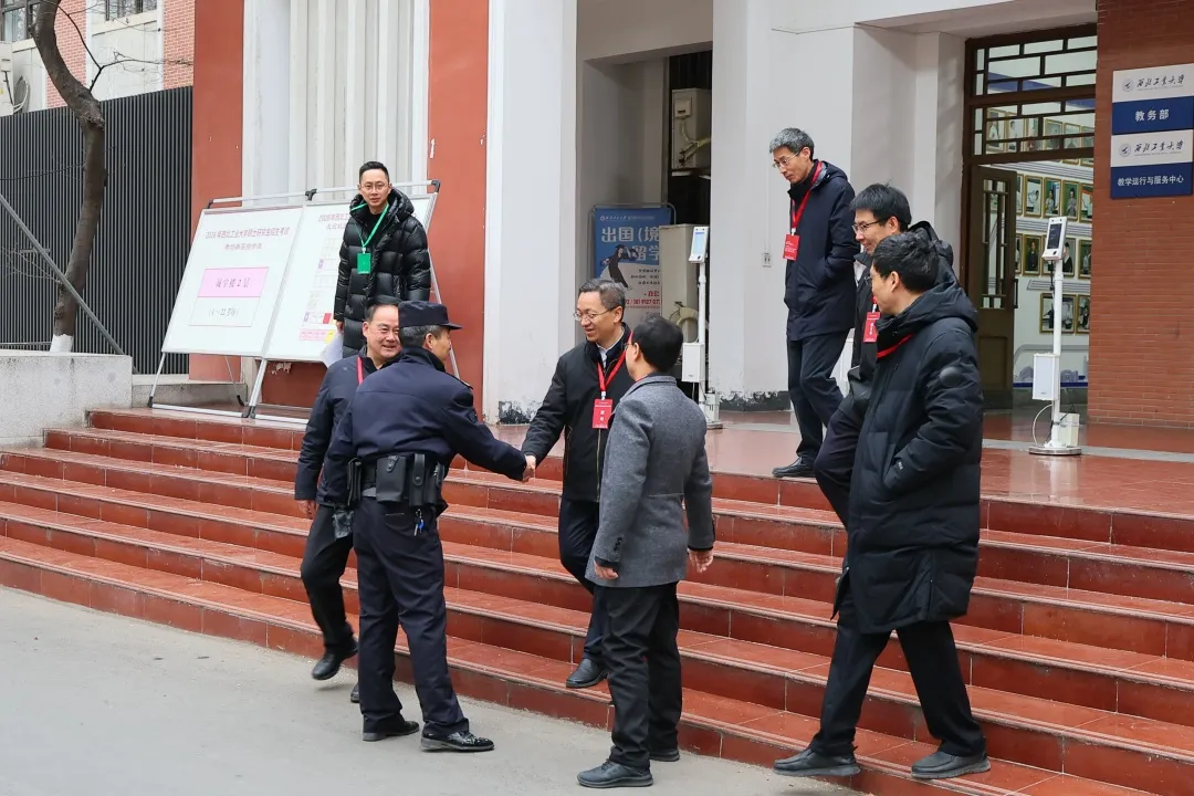 学校党委副书记、纪委书记徐永兵,副校长王伶与研究生院、党委学生工作部、党委保卫部、后勤部等相关单位负责人一同来到考试现场检查考场各项工作,并慰问了一线考务与保障人员。