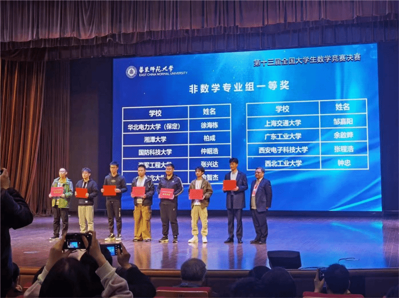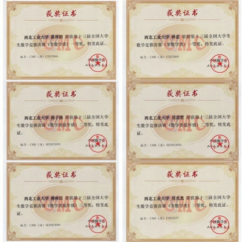 西工大新闻网3月31日电(王庆 马荣 谢潇潇)近日,第十三届全国大学生数学竞赛决赛在华东师范大学举行。748名来自北京大学、清华大学、中国科学技术大学、西安交通大学等高校的学生同场竞技。点点6名学生参赛,最终获得全国一等奖2项、全国二等奖2项、全国三等奖2项,获奖数量居全国前列。