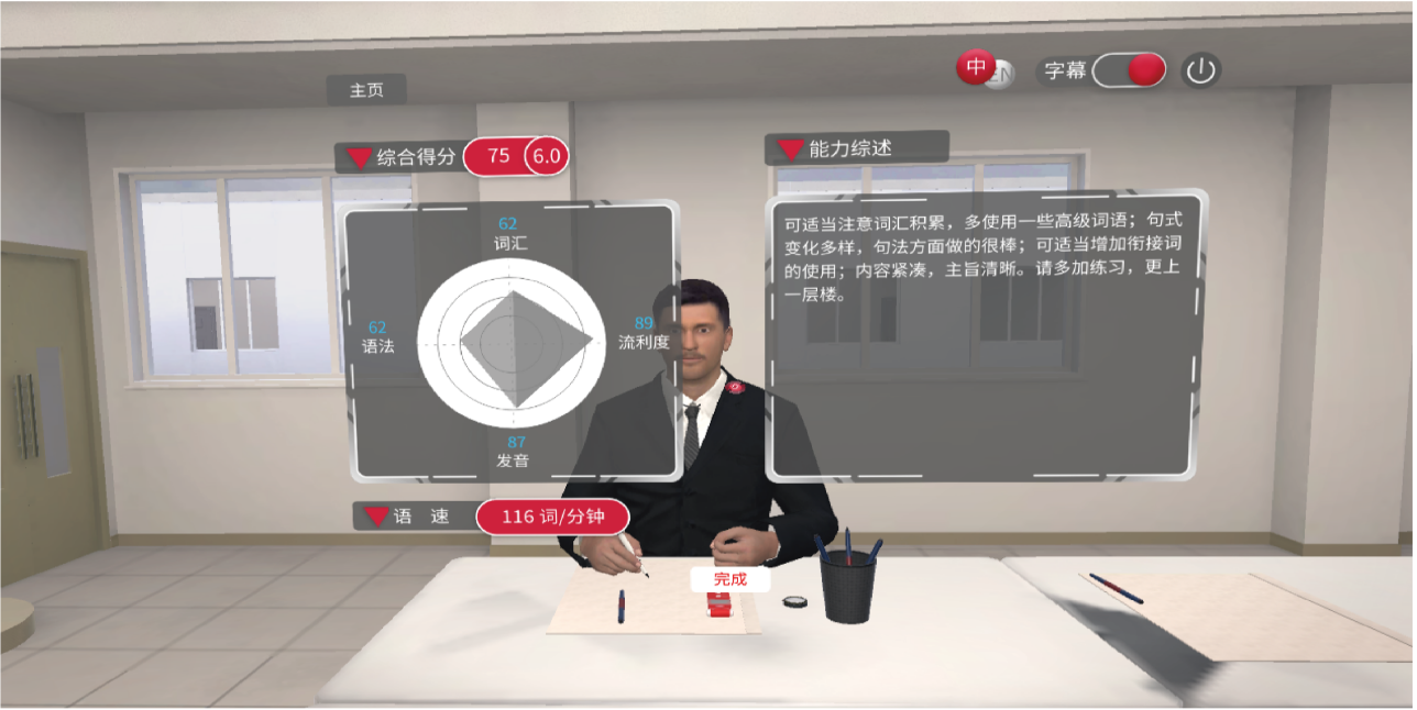 基于人工智能沉浸式VR口语训练测试系统界面及场景