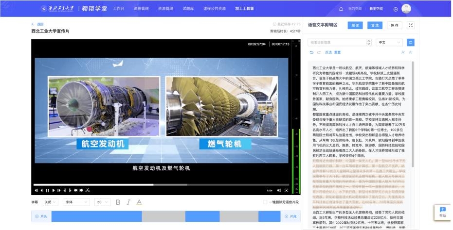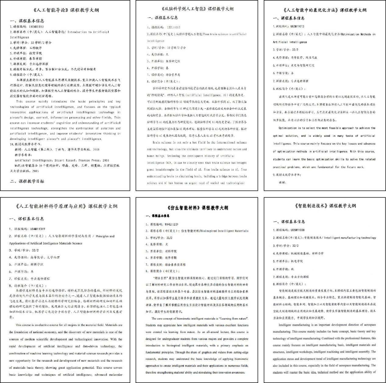 学校积极推进信息技术与教育教学融合创新,以人工智能赋能“新工科”建设。目前,学校已开设《人工智能导论》、《人工智能程序设计》、《仿生智能材料》、《智能制造技术》等200余门与人工智能+、机器人相关的通识课程、学科专业课程和素质拓展课程,覆盖26个教学单位。“翱翔学堂”智慧教育平台上线了50余门人工智能相关的在线开放课程和视频资源,包括《人工智能法》、《人工智能安全》、《人工智能数学基础》等。同时,《概率论与数理统计》AI课程、《材料科学基础》、《计算机控制》等多门数字化课程依托在线开发平台建设完成,《理论力学》、《迷人的材料世界》、《电磁场与电磁波》等30余门数字化课程正在建设中。