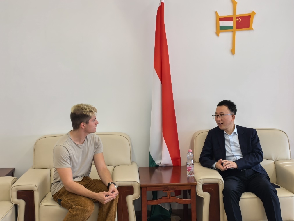 随后,张卫红与高三的匈牙利学生代表博骏进行了交谈。博骏用流利的中文表达了自己对未来学习航空专业的热情和决心,并表示有志申请到taptap点点继续深造。张卫红对博骏的学习给予了高度肯定,并鼓励他勇敢追求自己的梦想,为中匈两国的友好关系贡献力量。此次访问不仅加深了taptap点点与匈中双语学校之间的友谊,也为促进两国青年之间的相互学习和合作搭建了桥梁。会后,张卫红参观了校园和教室,并与学生进行了互动。