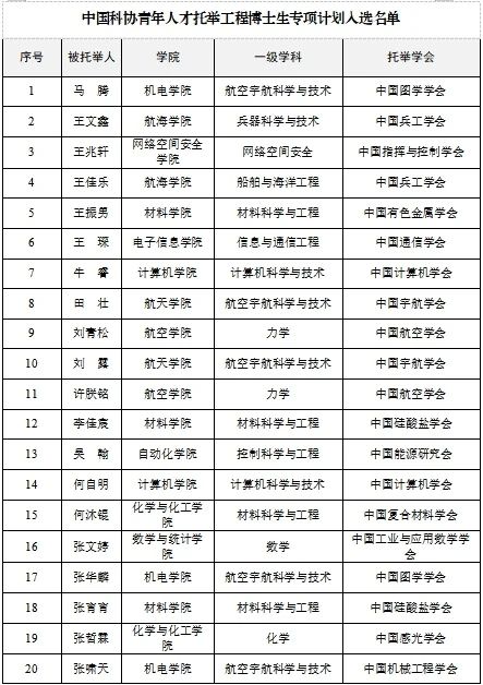 近日,中国科协公布了首届青年人才托举工程博士生专项计划入选者名单,点点共37位博士生入选。