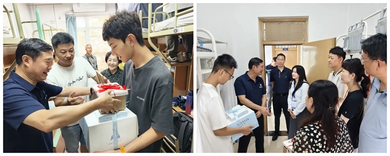 23日上午,副校长詹浩还前往学生宿舍看望新生,与新生及家长亲切交流,并给当天过生日的同学送上礼物和祝福。