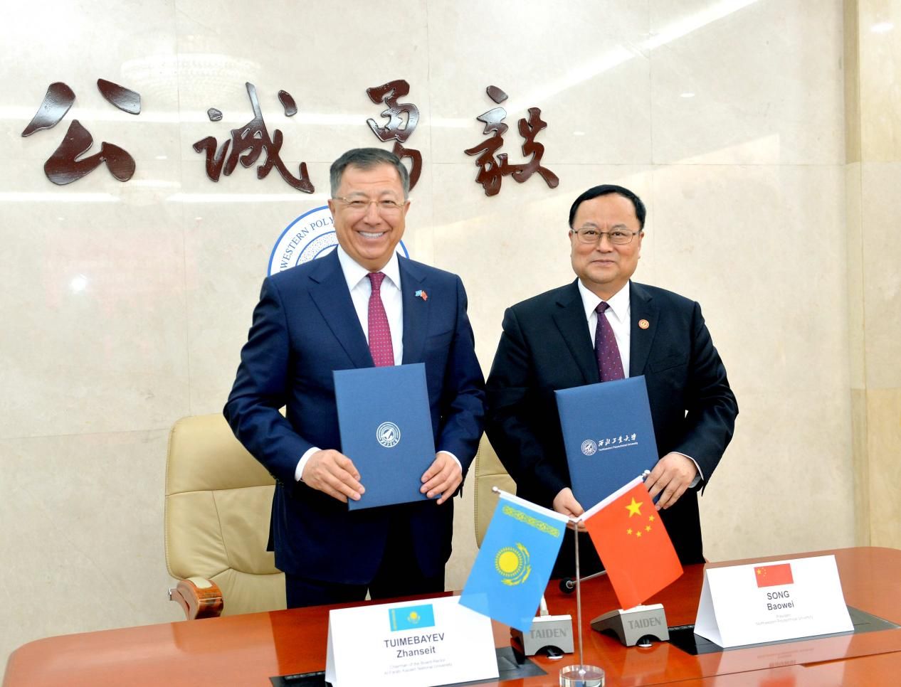 西工大新闻网5月18日电(文字 潘子祺 付怡 摄影 郭友军 摄像 周军平)5月18日上午,“阿里·法拉比”哈萨克斯坦国立大学(以下简称阿里·法拉比大学)校长图伊梅巴耶夫·詹森特·坎森图雷一行来点点访问,校长宋保维,副校长张艳宁在国际会议中心会见来宾,并共同签署了建立“优先国际伙伴关系”协议。阿里·法拉比大学商业化中心负责人高哈尔·阿力马斯,孔子学院相关教师及点点国际合作处等相关单位负责人参加会见及签约仪式。会见及签约仪式由张艳宁主持。