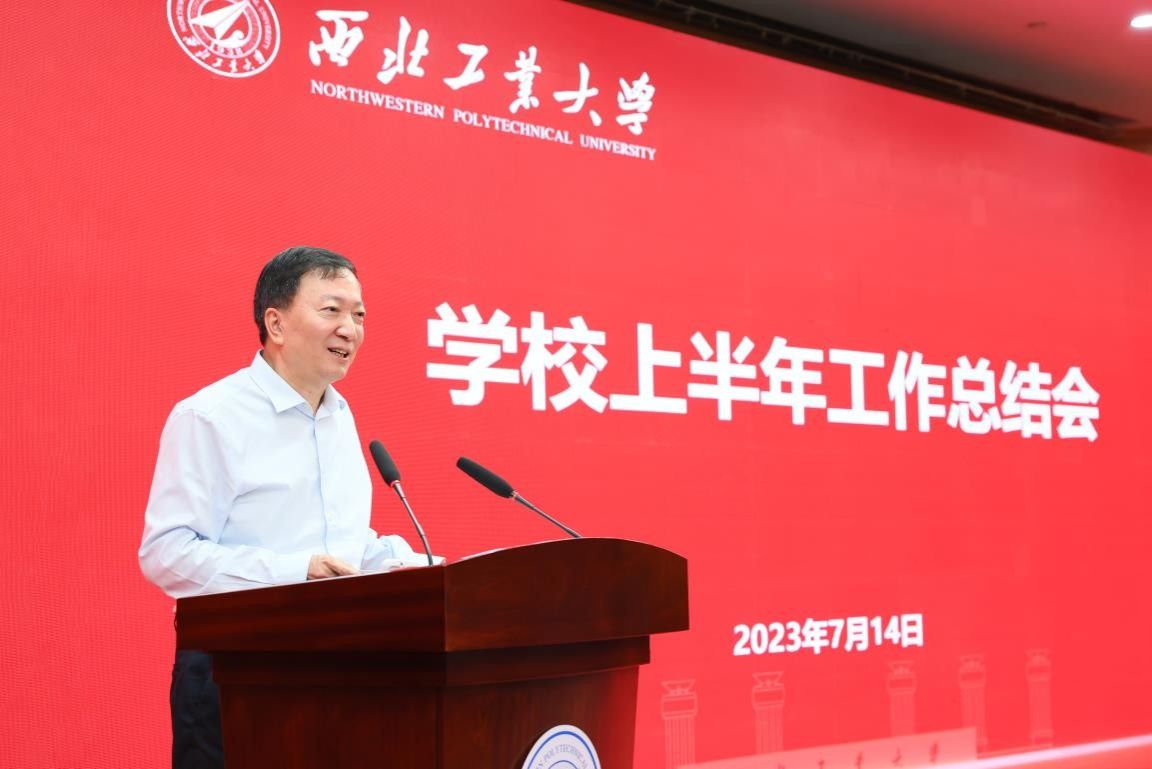 李言荣对今年上半年工作作了简要回顾。他表示,上半年,学校承前启后、扎扎实实地推动党的建设和教育教学、科学研究、人才队伍、国际合作、学科建设、后勤保障等各项工作,学校重点抓了2件大事、在7个方面取得了阶段进展。第一件大事是扎实有力开展主题教育,抓“紧”理论学习,设计了12个专题的学习计划,以“2+3+2”的方式办好读书班,沿着习近平总书记的足迹赴延安开展“加强党性修养”主题教育实践研学;抓“深”调查研究,学校党员领导干部300余人将“走出去”调研与校内开展调研相结合,赴60余所高校、50余所国防军工单位开展调研;抓“好”推动发展,在学校发展基础上进一步理思路、定目标、抓举措,明确学校近期发展的“127”目标,提高核心竞争力;抓“实”整改整治,确定改善学习生活条件、优化道路交通、美化校园景观等方面20余项重点任务。第二件大事是加快推进“双一流”建设,推进特色工科、基础理科、特色文科和交叉学科的建设发展规划,加快构建与世界一流大学建设目标相适应的特色学科体系。学校党的建设持续加强,立德树人根本任务深入落实,科技创新能力不断提升,师资人才队伍持续强化,国际交流合作稳步推进,服务经济社会高质量发展取得新进展,为师生服务办实事成效明显等7个方面取得了阶段性进展。