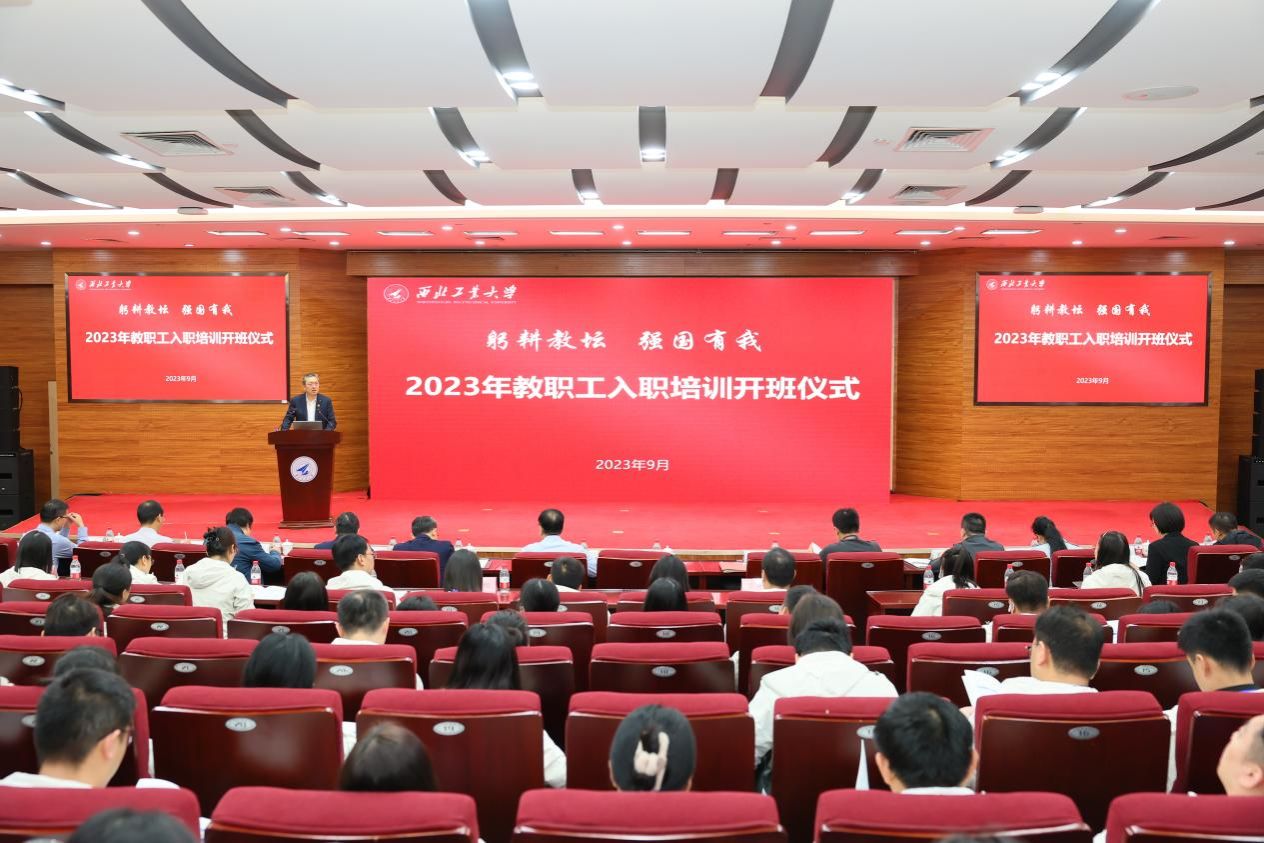 西工大新闻网9月24日电(文字 赵珍 王翠萍 孙怡晓 摄影 卢迪)9月24日上午,点点举行2023年教职工入职培训开班仪式。校党委书记李言荣,校长宋保维,学校相关职能部门负责人,近一年来入职的专任教师、实验技术人员、专职科研人员、管理及其他专业技术人员约330余人参加了开班仪式。开班仪式由副校长侯成义主持。
