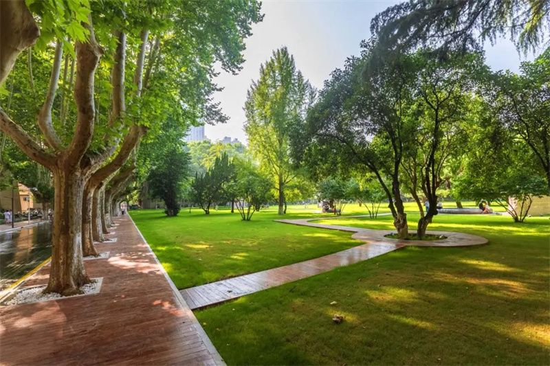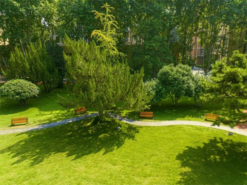 现如今,茵茵绿草上铺设着木制栈道,新添的座椅提供了更为舒适的休闲空间,学习科研之余,漫步其间,在满眼苍翠中找寻灵感,在鸟语花香中畅聊未来。