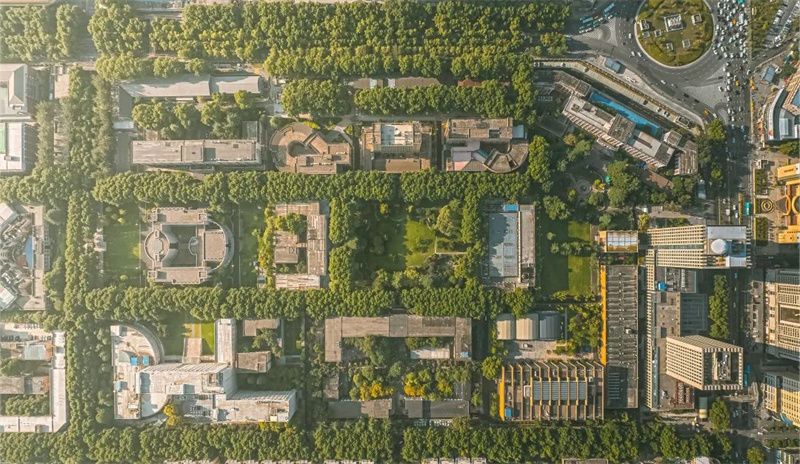 图书馆不仅是校园的地标性建筑,更是反映校风、学风、大学精神的重要文化殿堂。为优化校园公共空间,实现生态景观与主体建筑的立体融合,学校拆除了位于图书馆与校园主干道间的部分铁栅栏,并改造沿街绿地,形成了绿道和步道的系统连通,营造了开放包容的校园氛围。