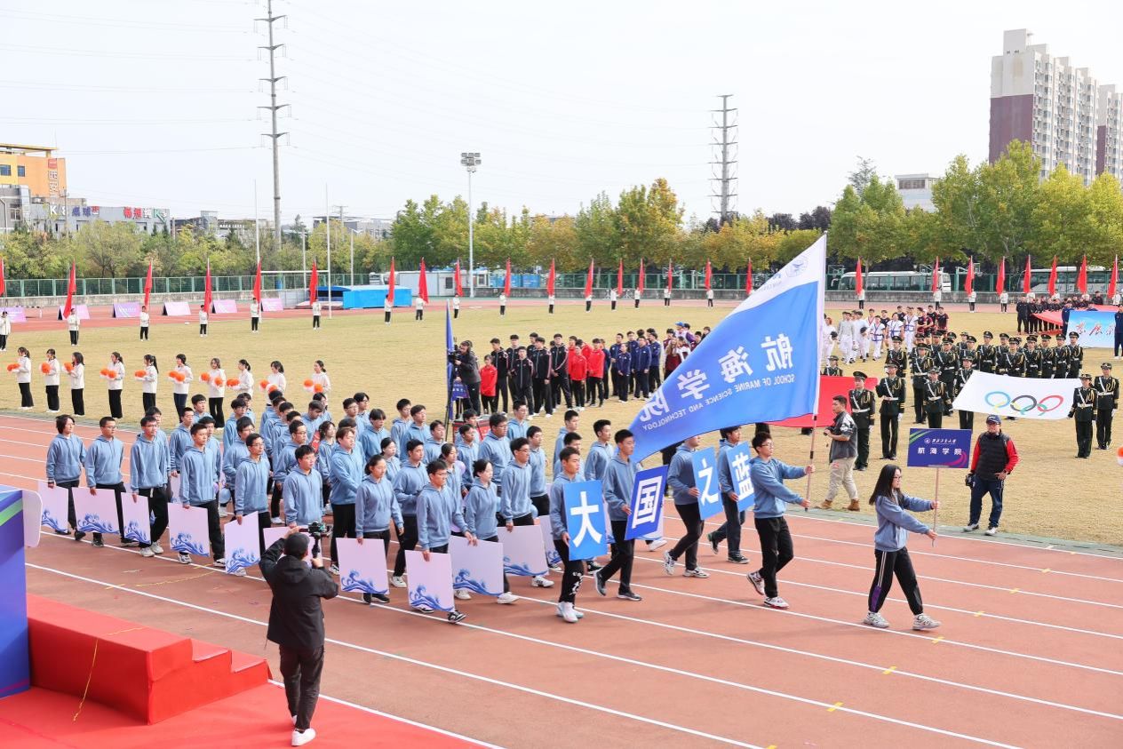上午9点30分,开幕式在大家的期待中准时拉开帷幕。各代表团方阵依次进入比赛会场。走在最前面的是校国旗班方阵,他们护卫着国旗、校旗和奥林匹克会旗进入会场。紧随其后的是红旗方队、裁判员方队、冠军方队、各学院运动员方队以及教职工代表方队。大家排着整齐的队伍,迈着强劲有力的步伐,喊着响彻云霄的口号,朝气蓬勃、意气风发地依次从主席台前经过。铿锵的鼓点,撞击着年轻的心扉,激昂的旋律,充满着向上的力量!
