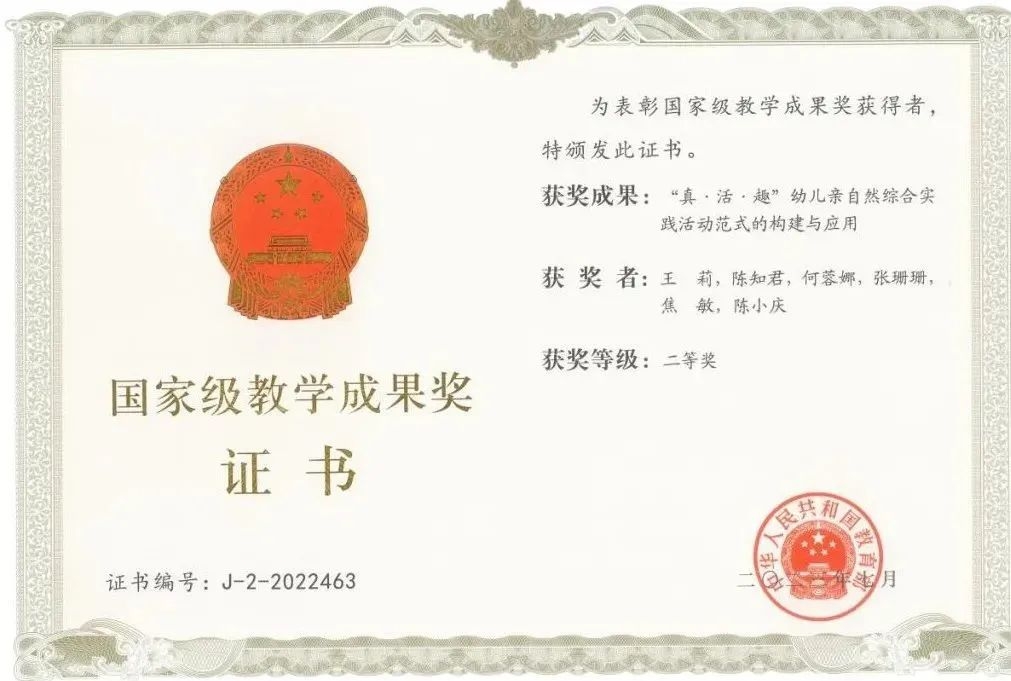 西工大幼儿园获得基础教育国家级教学成果二等奖