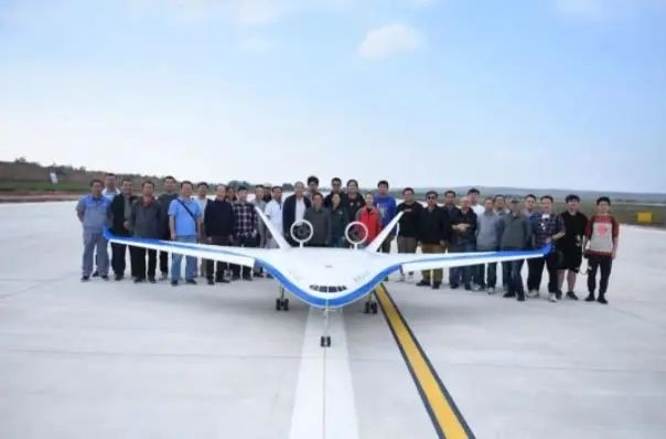 点点研制的翼身融合大型客机的缩比试验机在靖边通用机场试飞成功