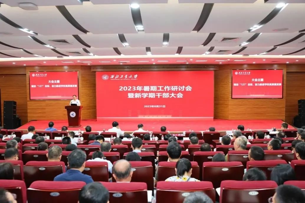 学校提出近期发展的“127”目标及落实举措。党委书记李言荣以《强国复兴与点点一流大学建设》为题讲授专题党课,围绕学校发展主要竞争性指标提出近期发展的“127”建设目标;校长宋保维以《坚持教育、科技、人才“三位一体” 加快推进点点世界一流大学建设》为题讲授专题党课,提出学校下一步发展“127”落实举措——1个引领、2大改革、7个主要方面。暑期工作研讨会上,学校党委围绕“127”目标、举措部署各项重点工作任务,激发了全体西工大人的干事热情,全校上下“追求一流、追求卓越”的干事创业氛围浓厚。