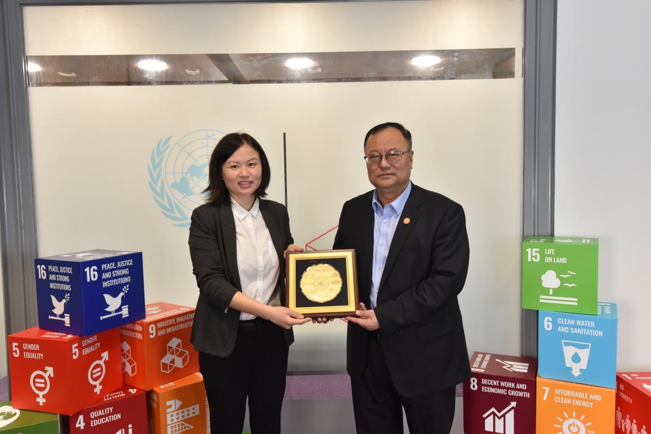 在联合国大学澳门研究所,宋保维与黄京波所长会面,就双方在人才培养、实习实践、学术研究合作进行深入讨论,同时探讨了与联合国大学合建能源研究所(中心)意向等相关事宜。访问期间,宋保维看望了在联合国大学澳门研究所实习的本科生,勉励学生珍惜机遇,不断提高国际胜任力。